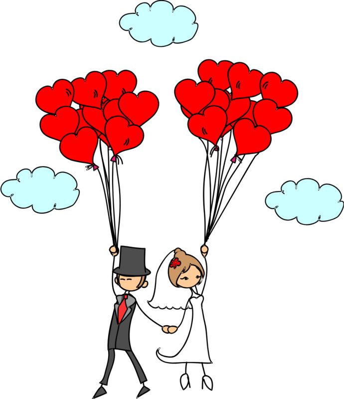 Cartoon Wedding Groom Bride Heart Balloons 3