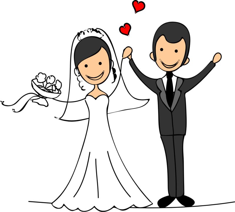 Cartoon Wedding Groom Bride Holding Hands 4