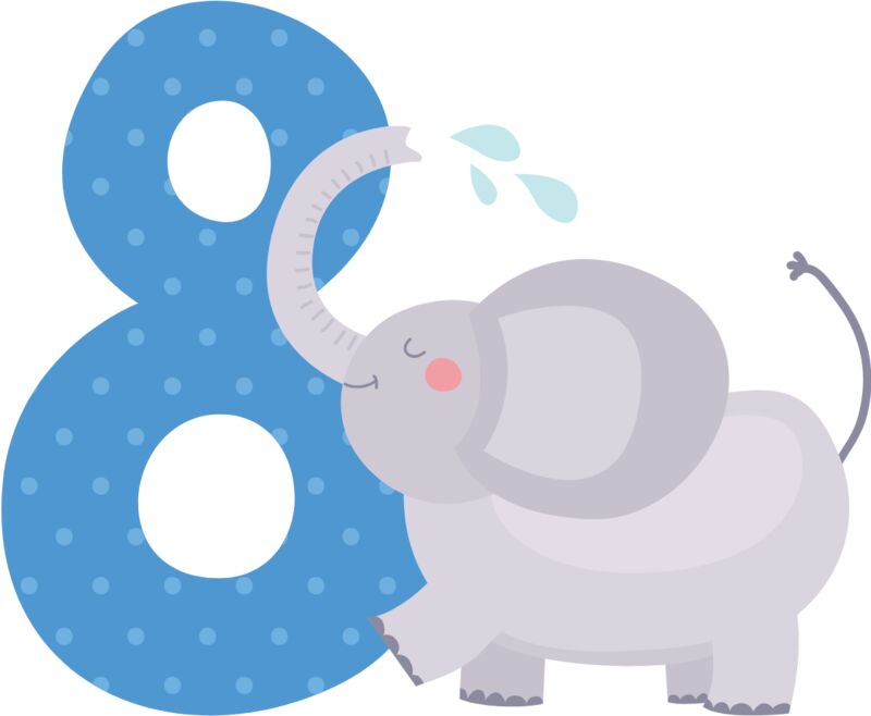 Eight Birthday Animal Elephant Number 1
